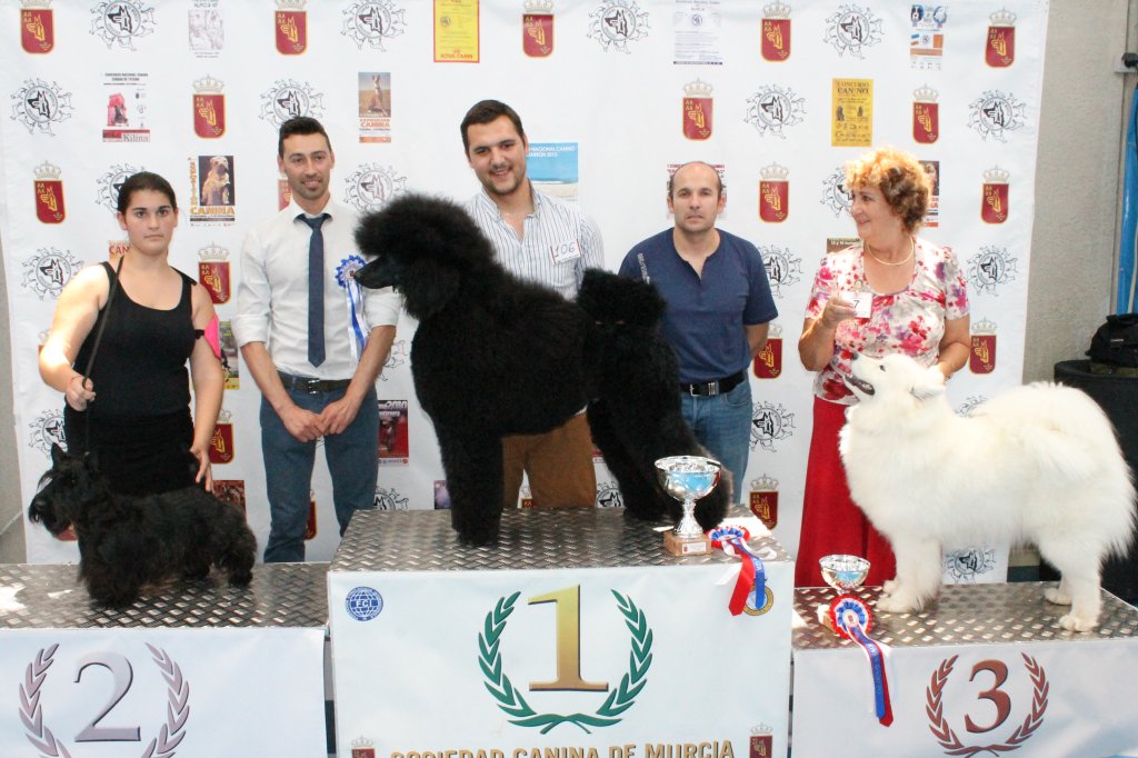 El juez Ricardo A. Sánchez Palazón eligió como Mejor Ejemplar Absoluto al caniche mediano negro “Bedingfield Willy I Am”, propiedad de Penny Evans y David Jenkins. La entrega de premios corrió a cargo del concejal delegado de Deportes del Ayuntamiento de Mazarrón, Andrés Valera, quien estuvo acompañado de las concejalas María Martínez y Magdalena Méndez.
