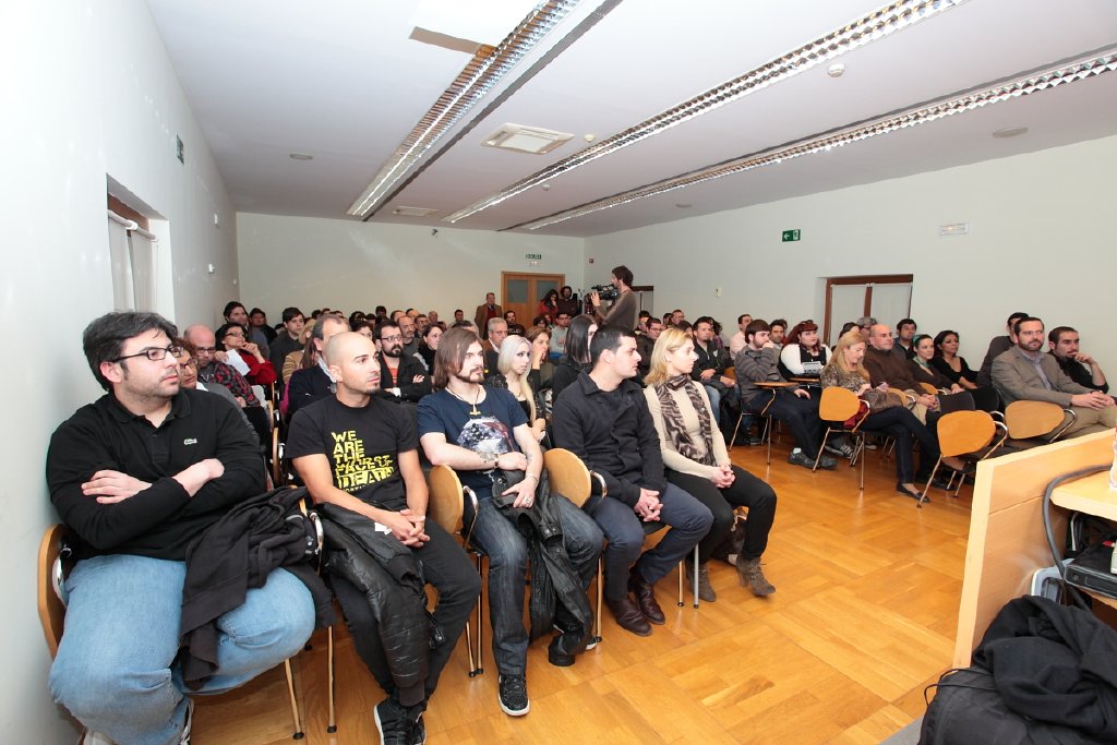 La charla fue presentada por Ginés Campillo, Alcalde de Mazarrón y Pablo Blesa, Decano de la Facultad de Comunicación de la UCAM
