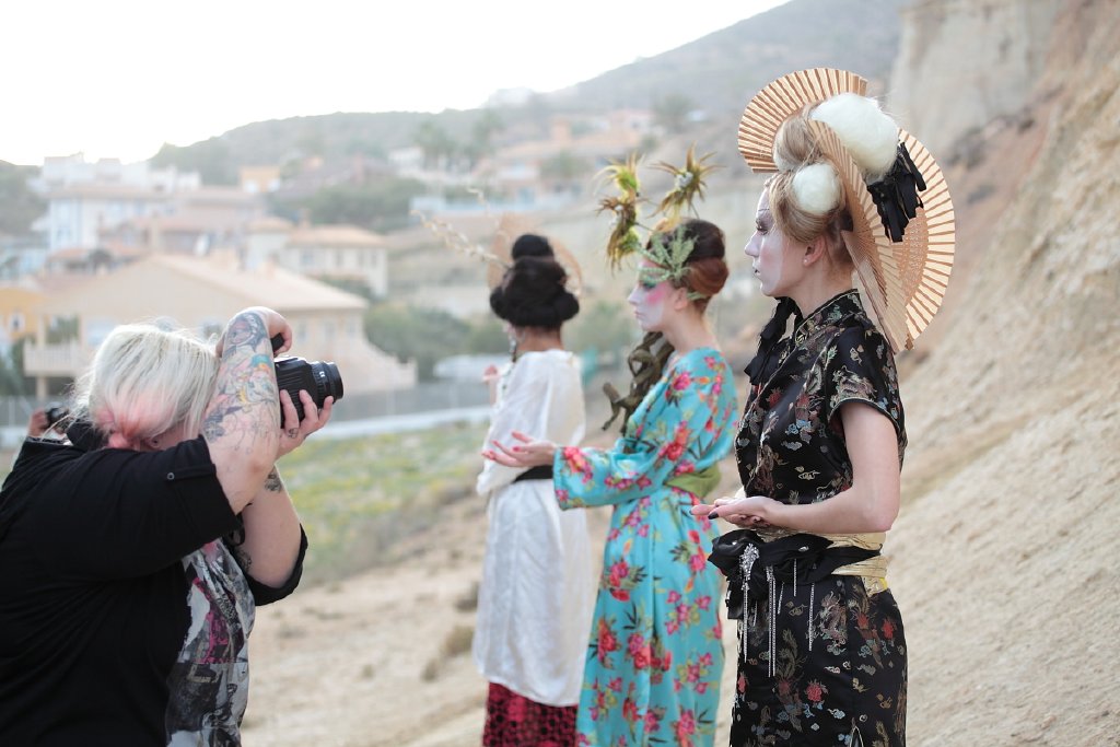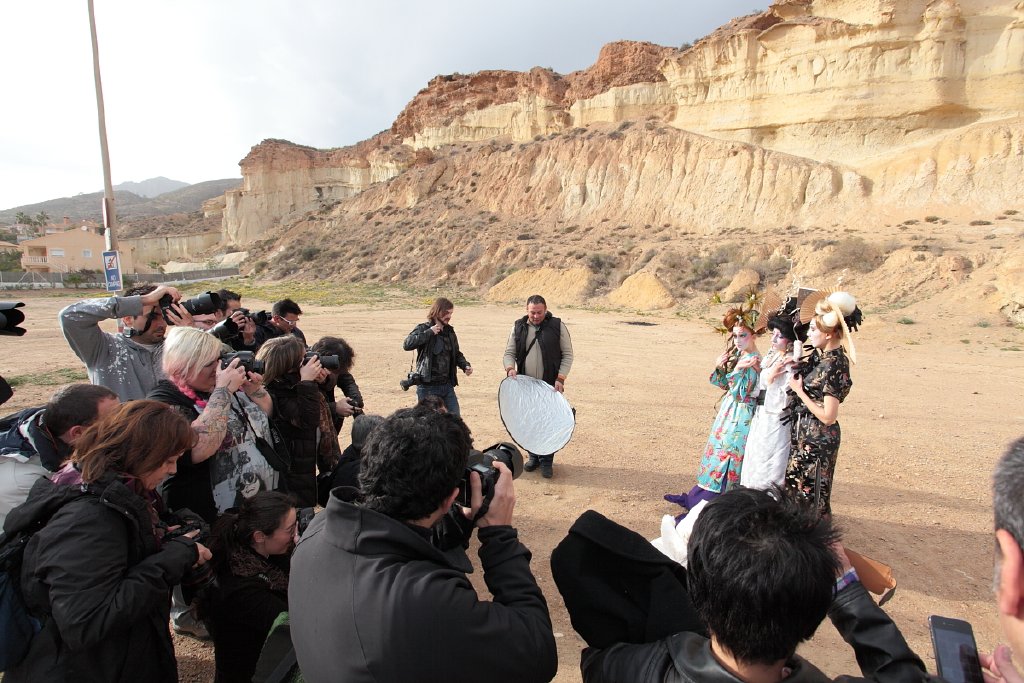 Durante todo el puente de San José Rebeca está impartiendo un largo taller de 4 días a los alumnos matriculados en el Titulo de Experto Universitario en Fotografía, organizado por Fotogenio y la UCAM. Durante el domingo y el lunes se están realizando diferentes sesiones fotográficas por distintos enclaves del municipio, minas, Erosiones de Bolnuevo, Calas de Bolnuevo. En todo ello participa un nutrido grupo de producción con seis modelos profesionales, varias maquilladoras, estilistas, asistentes, y los propios alumnos. Lo cual despertó la curiosidad de numerosos curiosos que se encontraron con semejante despliegue.