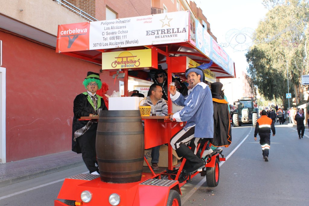Después desfilaba Cañada de Gallego con una carroza presidida por un gran abanico, un torero y una flamenca bajo el título “Costumbres españolas”. Tras ellos ha hecho aparición un tándem de bicicletas en el que viajaban, pedaleando para ponerla en marcha, el Alcalde de Mazarrón, Ginés Campillo, el concejal de Festejos, Isidro Coy, y el edil Andrés Valera, entre otros.