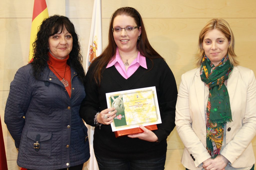 El salón de actos de la Casa de Cultura de Mazarrón acogió ayer la entrega de premios de la II edición del concurso de poesía amorosa “Declára-te” que ha promovido la concejalía de Cultura, a través de las bibliotecas municipales de Mazarrón y Puerto. Los premios fueron entregados por la concejala delegada de Cultura, María Celeste Soria, que estuvo acompañada por la edil de Desarrollo Rural, Magdalena Méndez. Soria agradeció “la alta participación que ha vuelto a tener este año el concurso que, en esta ocasión, ha contado con dos modalidades. Una para los alumnos de los institutos del municipio, como el pasado año, y otra nueva de adultos”.