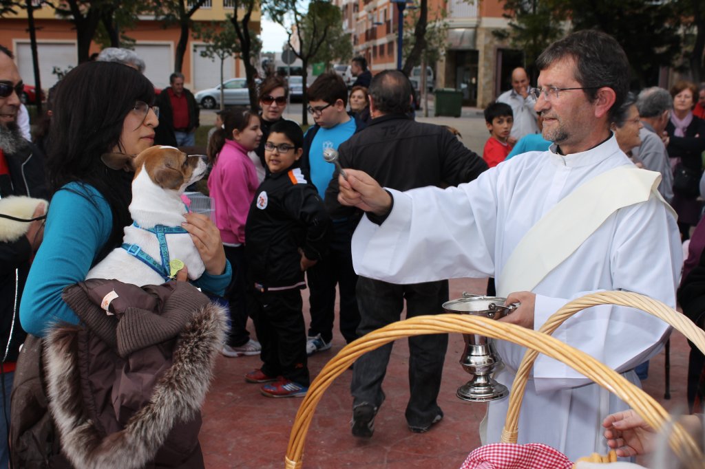 La bendición corrió este año a cargo del nuevo diácono de la parroquia de San José de Puerto de Mazarrón, Francisco Acosta Acosta, quien lanzó sobre los animales el agua bendita que, según dice la tradición, mantiene a éstos a salvo de la enfermedad durante el resto del año. También estuvo presente en el acto el concejal de Festejos y Policía Local del Ayuntamiento de Mazarrón, Isidro Coy, junto a otros vecinos de este popular barrio.