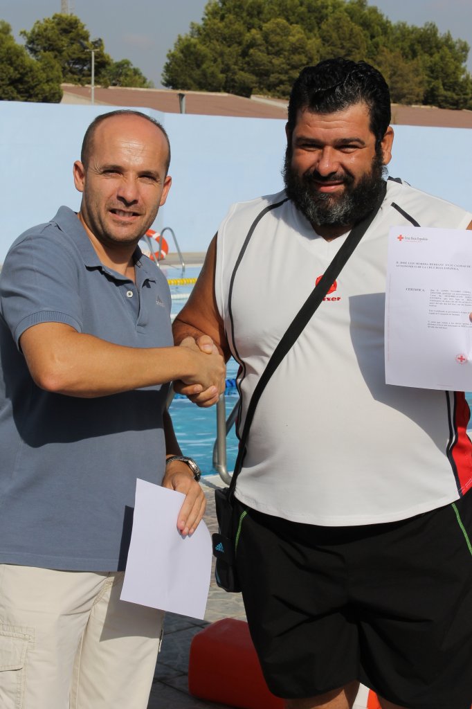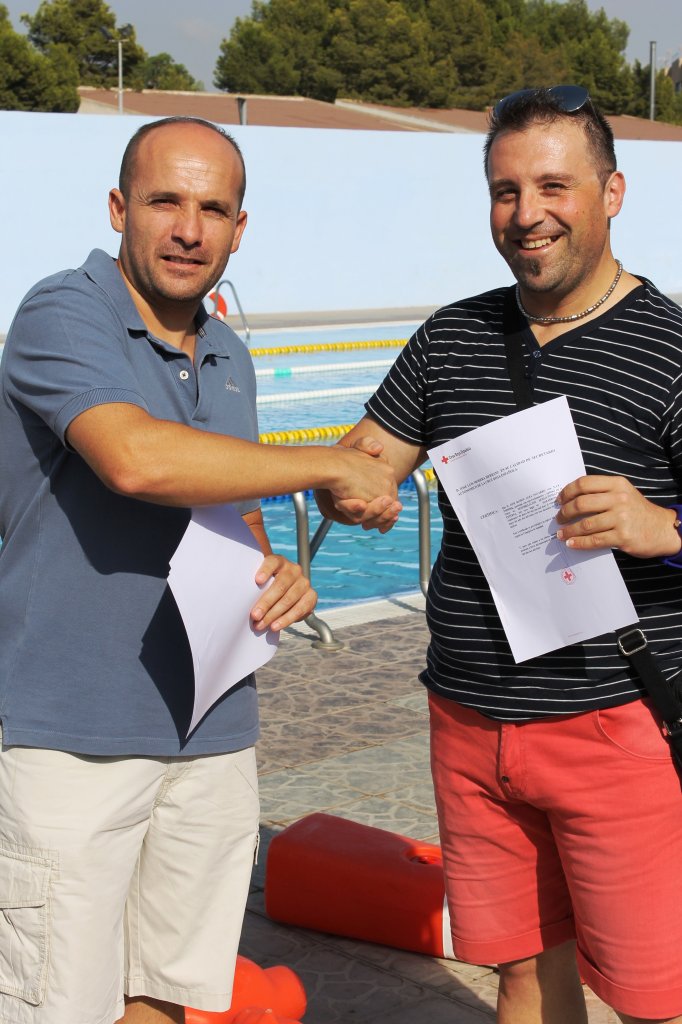 El concejal de Deportes, Andrés Valera, entregó ayer a 6 conserjes de las instalaciones deportivas municipales un diploma en el que se certificaba que habían superado con éxito el curso de “Desfibrilación semiautomática externa” que les había sido impartido por Cruz Roja Española. El objetivo de este curso es que “los conserjes del área de Deportes sepan usar estos aparatos con el fin de poder actuar ante cualquier eventualidad o emergencia sanitaria que pueda acaecer en nuestras instalaciones deportivas”, ha declarado el edil.