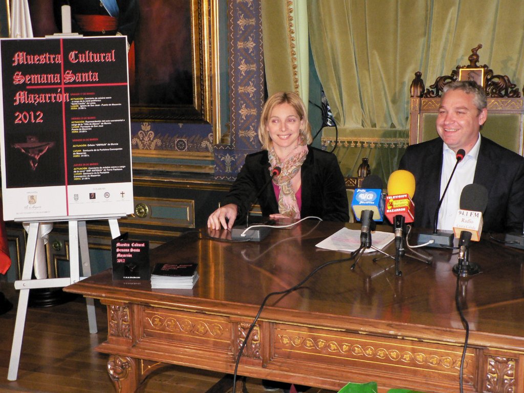 Mazarrón Mayor, Ginés Campillo, presented yesterday together with the council of Culture, Tourism and Education, María Celeste Soria, the programming of the Cultural Sample of Easter that has been recovered this year by the Town Hall of  Mazarrón to enlarge the acts that wil be carried out with occasion of these dates. For Ginés Campillo “to have recovered this programme is to bet for the culture, but not only that; also we have made it because is our duty  to continue selling Mazarrón and give increasing importance to our Easter”.