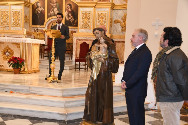 La parroquia de San Antonio de Mazarrón fue escenario este martes de un emotivo acto con la presentación oficial de la imagen restaurada de San Antonio, patrón de nuestro municipio, que vuelve a mostrarse a vecinos y fieles tras los trabajos realizados en el Centro de Restauración de la Región de Murcia.