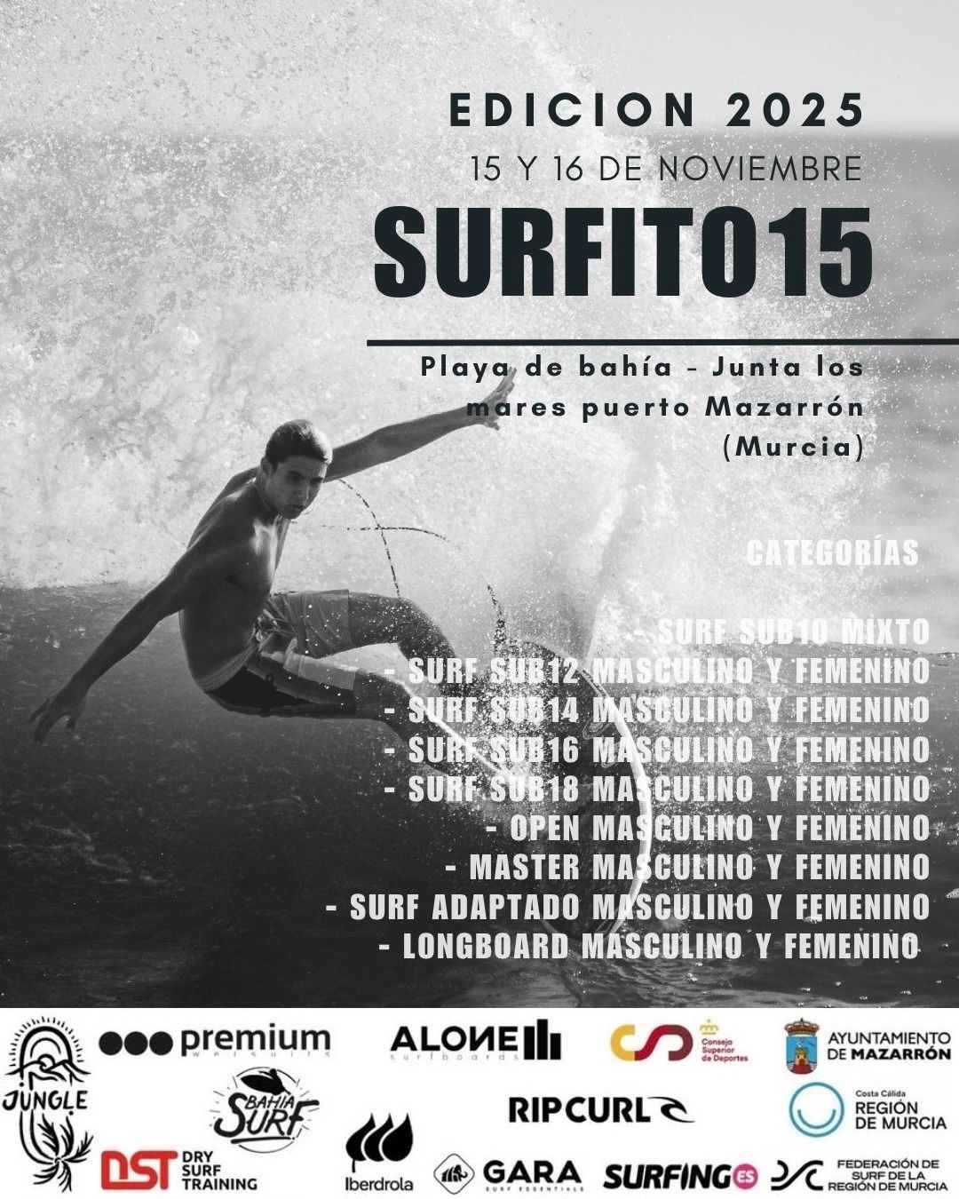 Este 15 y 16 de noviembre de 2025, la Playa de Bahía La Reya, en Puerto de Mazarrón, se convertirá en el epicentro del surf infantil y juvenil a nivel nacional, con la celebración de dos eventos de gran relevancia en el calendario: el Campeonato de España Bahía Surfing Kids 2025 y la edición 2025 del Surfito 15.