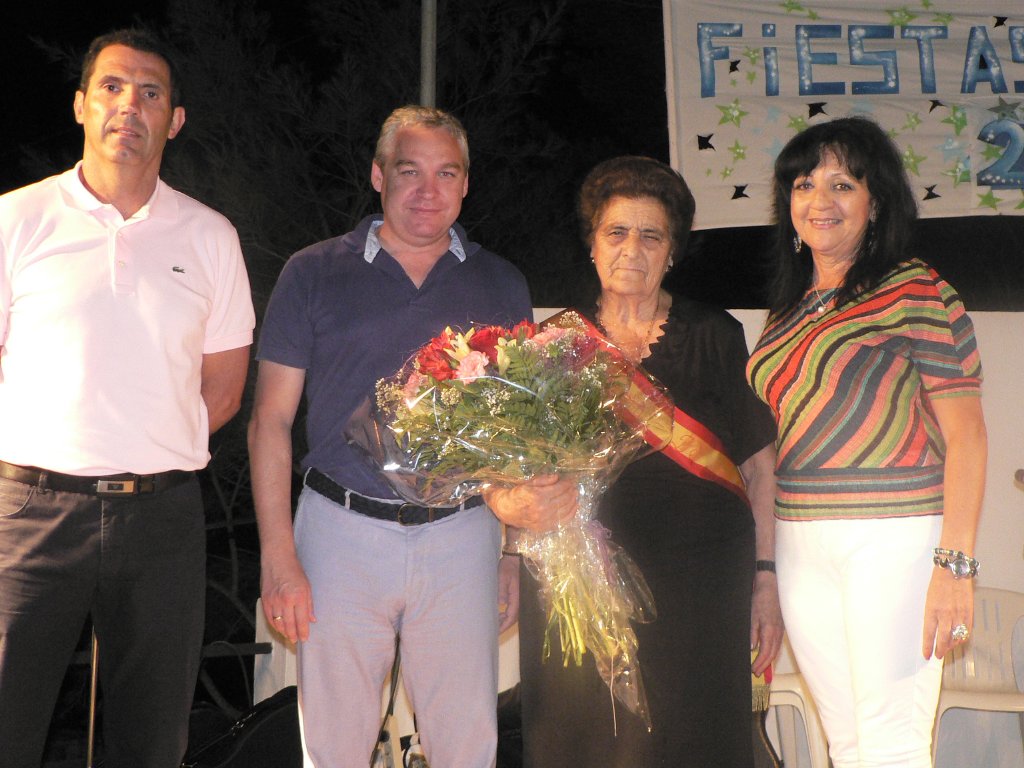Al finalizar el pregón, Francisco García recibió una placa de manos del Pedáneo, Juan Soler. Pero éste no fue el único reconocimiento de la noche ya que el autor de la exposición “Memoriam”, Juan Francisco Belmar, también recibió una placa por su trabajo fotográfico. Otro de los momentos importantes de la noche fue la elección de las Reinas. Este año la corona de la Reina de las Fiestas al ostenta la joven Paqui Motos Sáez, que fue coronada por el Alcalde Ginés Campillo. La banda de reina Infantil fue para la niña Paqui Sánchez Soto, mientras que la de la Tercera Edad fue para Antonia Sánchez Ruiz, la cual recibió una gran sorpresa por este reconocimiento.