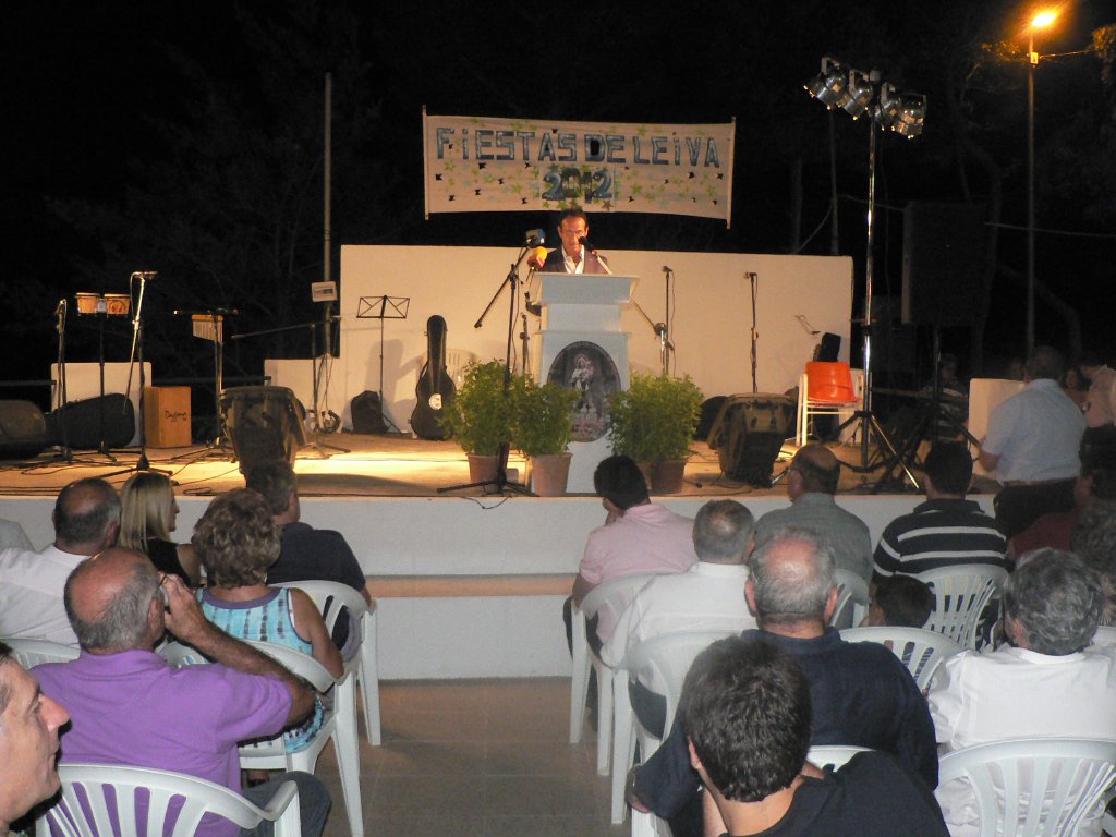 Tras la inauguración se llevó a cabo el pregón de las fiestas de este año que corrió a cargo de Francisco García Romero, ingeniero técnico agrícola afincado en Totana pero que pasó su infancia y adolescencia en Leiva. El pregonero estaba muy emocionado porque “aunque me he establecido en otro lugar, siempre me he sentido muy unido a esta tierra y a sus gentes” de las que resaltó “la calidad humana de las personas que viven aquí”. Entre los recuerdos que dibujaron una sonrisa entre los presentes, el pregonero rememoró “los traqueteos de la carreta en la que nos subíamos los niños para ir al cine que se proyectaba en el teatro de La Majá (La Majada)”.