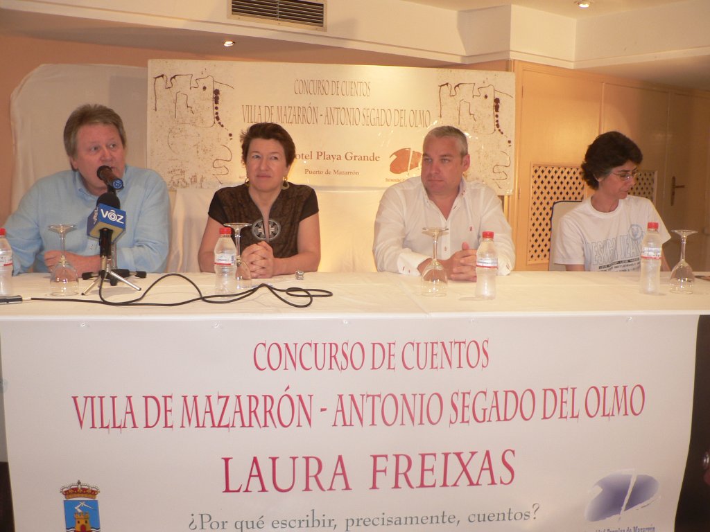 La escritora y ensayista barcelonesa Laura Freixas ofreció ayer una interesante visión sobre la literatura breve en la conferencia titulada “¿Por qué escribir, precisamente, cuentos?” que fue seguida por más de un centenar de personas que acudieron al hotel “Playa Grande” de Puerto de Mazarrón, donde esta noche se entregan los premios de la XXVIII edición del concurso de cuentos “Villa de Mazarrón – Antonio Segado del Olmo” a partir de las 23 horas. La ponencia contó con la presencia del Alcalde de Mazarrón, Ginés Campillo, y la concejala de Cultura, Educación y Turismo, María Celeste Soria.