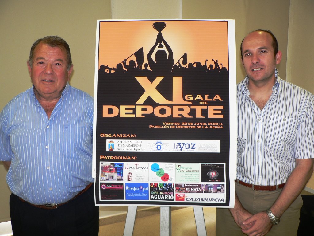 Este viernes, a partir de las 9 de la noche, tendrá lugar en el pabellón de Deportes de “La Aceña” la celebración de la XI Gala del Deporte. La cita, en la que se galardona a los deportistas y clubes que han sobresalido durante el último año deportivo, fue presentada por el concejal de Deportes del Ayuntamiento de Mazarrón, Andrés Valera, y el director del grupo de comunicación “La Voz de Mazarrón”, Antonio Balanza, cuyas entidades a las que representan organizan conjuntamente la gala.